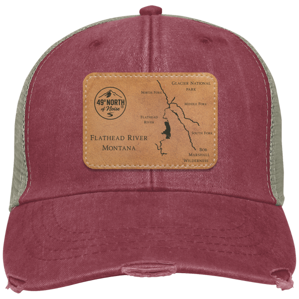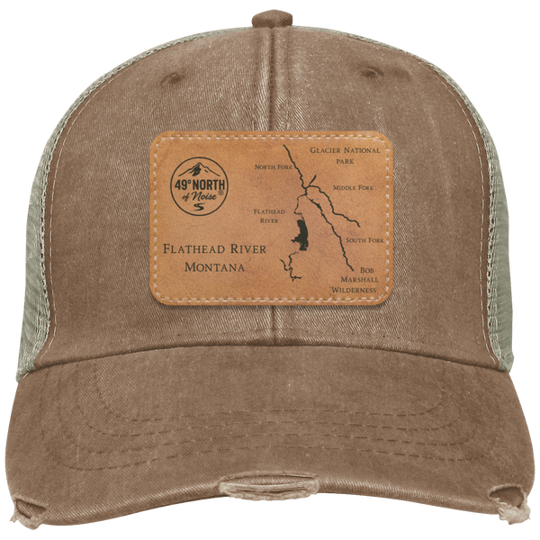 This cap features a unique leather patch showcasing the Flathead River map, letting you carry your fishing memories everywhere. It's a stylish nod to your love for the river and the stories it holds.